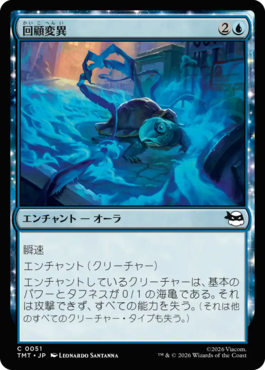 回顧変異は無力化するタイプの疑似除去です。瞬速が偉く、コンバットトリックみたいにも使えます。ボット叩きタイム同様、ファッティの対策ができるのが利点ですね。解除されるリスクはありますが、解除さえされなければ確定除去みたいなものです。