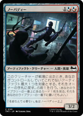 コモンのノーバディーは強いですが、他はユートロム星の科学者たち、ヌル・グループの生物リソースなどだいぶ格落ちします。アンコモンは機械いじりの才能、ドナテロが強いですが、それくらいです。赤青の3マナは本当にスカスカだと感じます。
